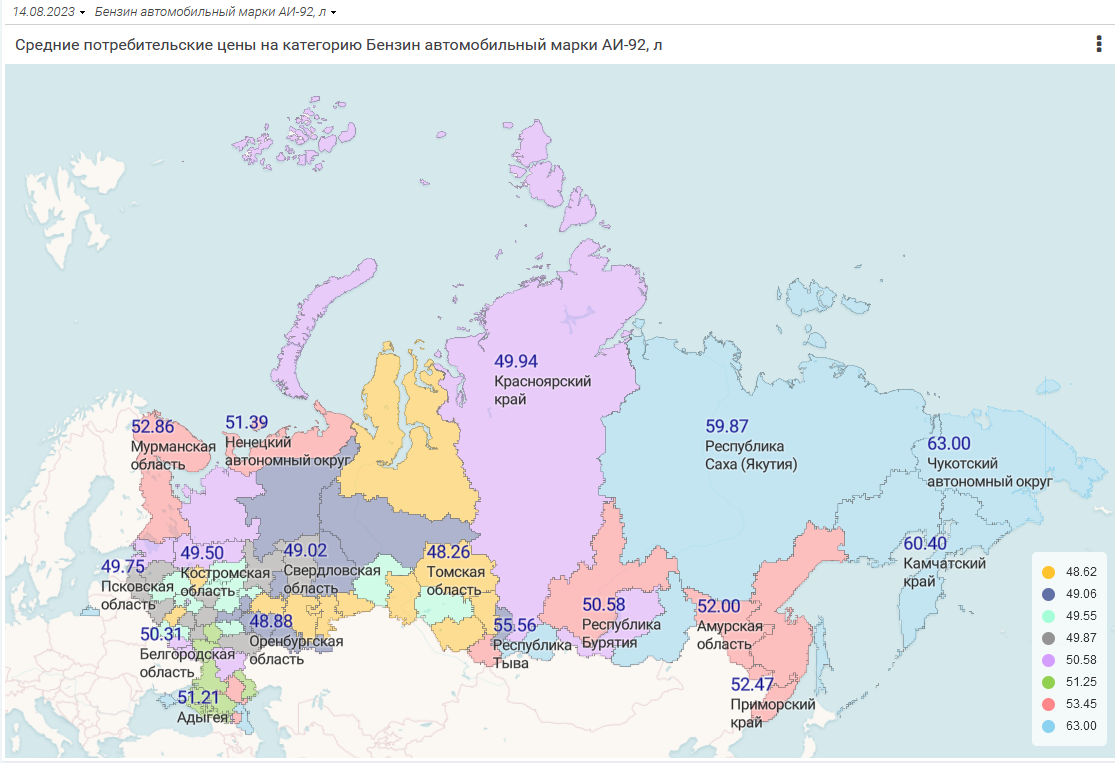 | Владивосток | АИ-92 (л) | АИ-95 (л) | АИ-98 (л) | ДТ (л) |