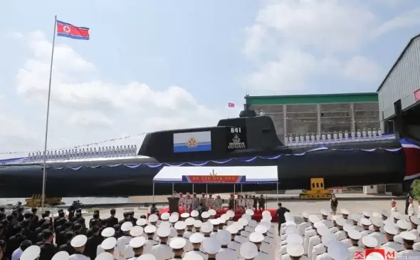 Это первая северокорейская субмарина, оснащенная тактическим ядерным оружием. Подлодка готовится к выходу в море для испытаний. Уточняется, что церемония спуска на воду была приурочена к 75-летию основания КНДР.