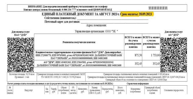ДЭК информирует население Приморья об изменении сроков получения квитанций за август 2023