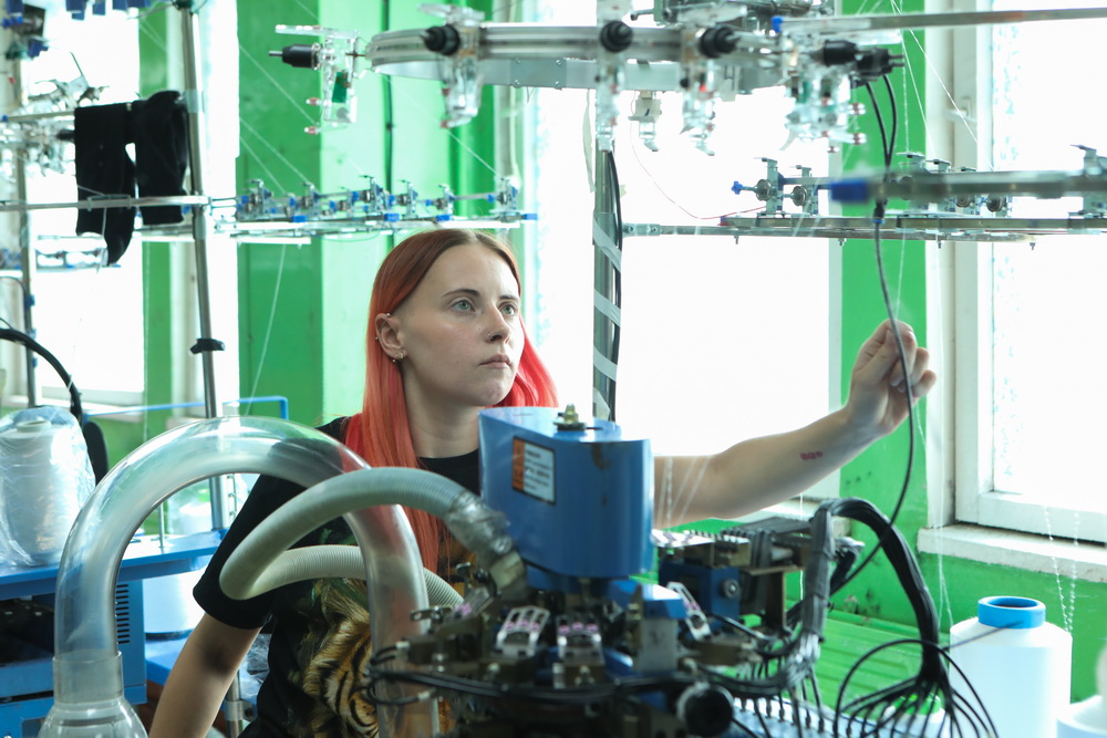 По словам гендиректора, когда они начинали, помощи производителям ждать было не от кого. Учились на собственных ошибках и за свой счет. Первая партия носков, например, оказалась бракованной, покупатели возвращали товар. Некоторое время производство было нерентабельным, а склады – забиты продукцией из-за отсутствия выстроенных каналов продаж. На прибыль предприятие вышло через пять лет. Сейчас в производственном цеху 20 современных вязальных машинок и собственная, годами наработанная технология производства носков.
