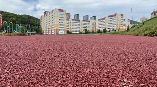 Несмотря на то, что школы № 82 и №83 в этом густонаселенном районе Владивостока относительно новые, покрытие на стадионах износилось и нуждалось в замене.