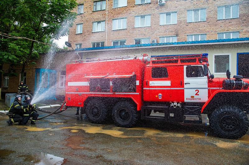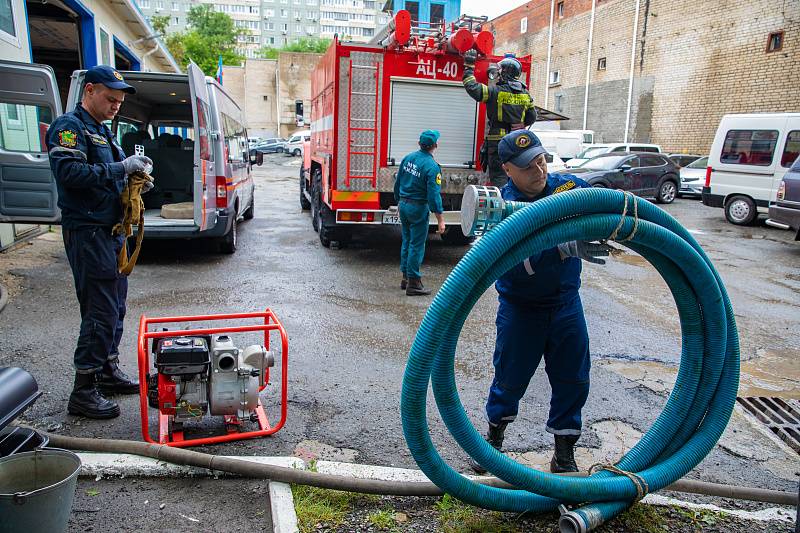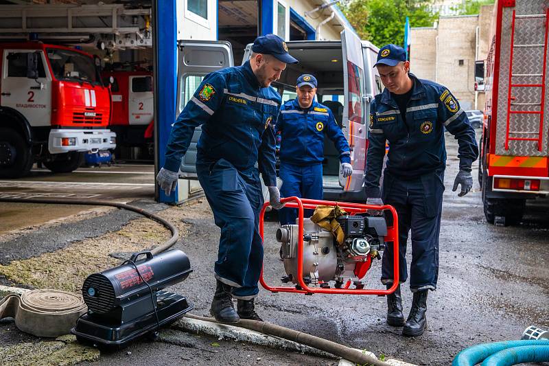 Владивостокская городская поисково-спасательная служба (ВГПСС) совместно со спасателями пожарно-спасательной части № 2 отрабатывают план действий в условиях тайфуна и подтоплений, сообщают «Вести:Приморье».