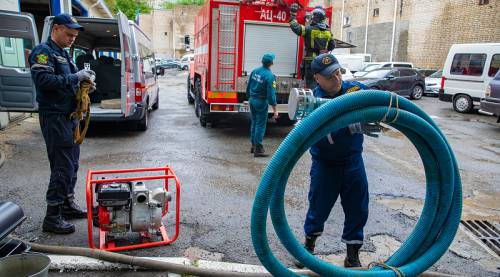 На территории части развернули специальное оборудование - гидроэлеваторы, с помощью которых можно откачать воду, а также тепловые пушки, чтобы просушивать затопленные помещения.