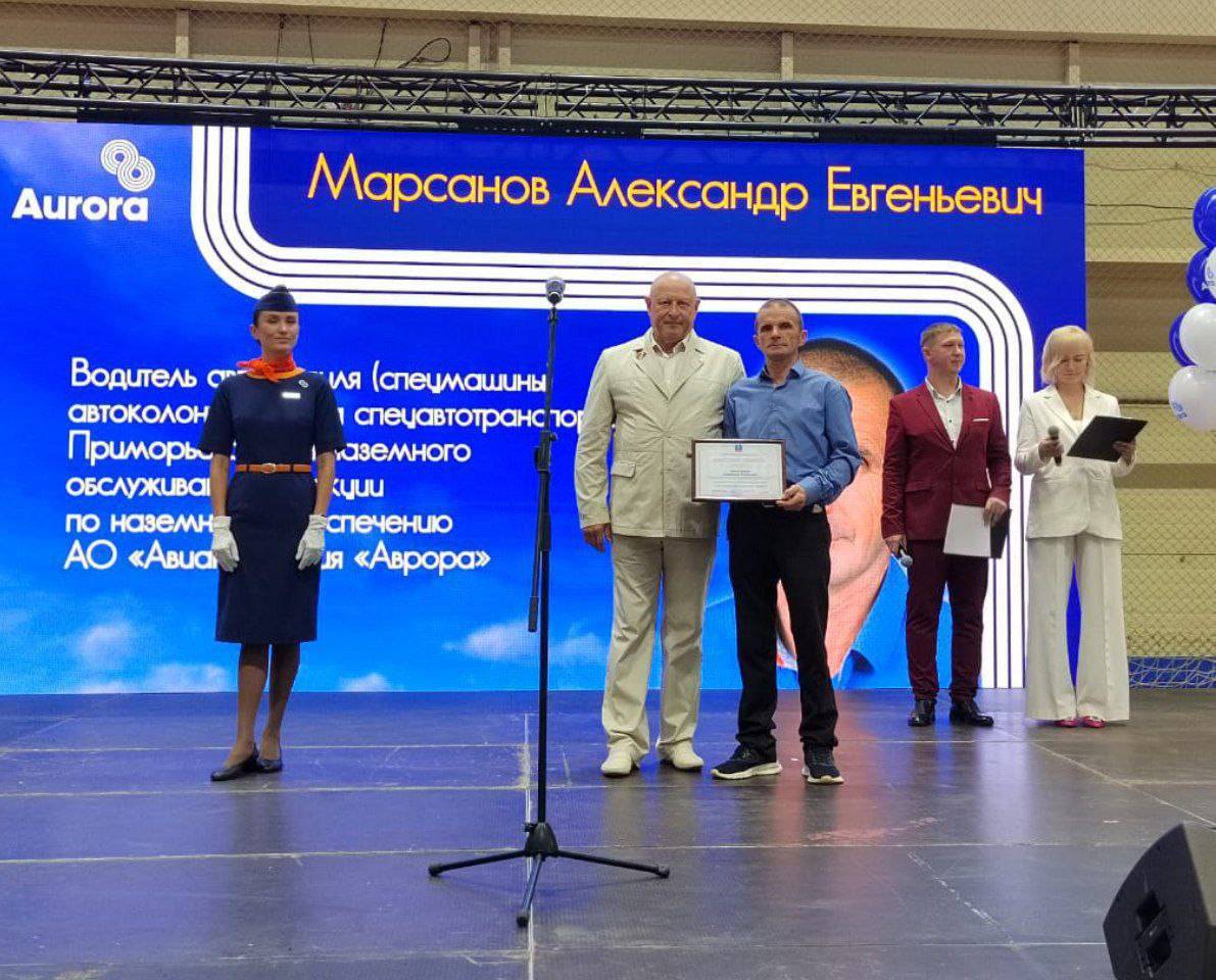 От имени Думы АГО с профессиональным праздником коллег поздравил заместитель председателя Думы АГО и директор Приморского филиала АО «Авиакомпания «Аврора» Виктор Крючков. Он вручил почетные грамоты Александру Марсанову, Валерию Маркову, Елене Тулюля.
