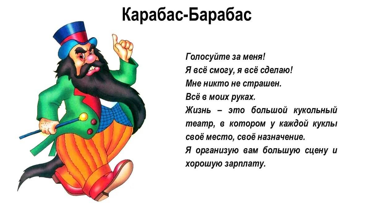 Занятие пройдет 25 сентября и будет приурочено к 30-летию создания Центризбиркома России. Чтобы лучше объяснить, как работает процедура избрания, для школьников проведут выборы президента, где кандидатами выступят Карабас-Барабас, Золушка, Лиса Алиса, Баба-яга и Винни-Пух. Для каждого персонажа предусмотрена собственная предвыборная программа.