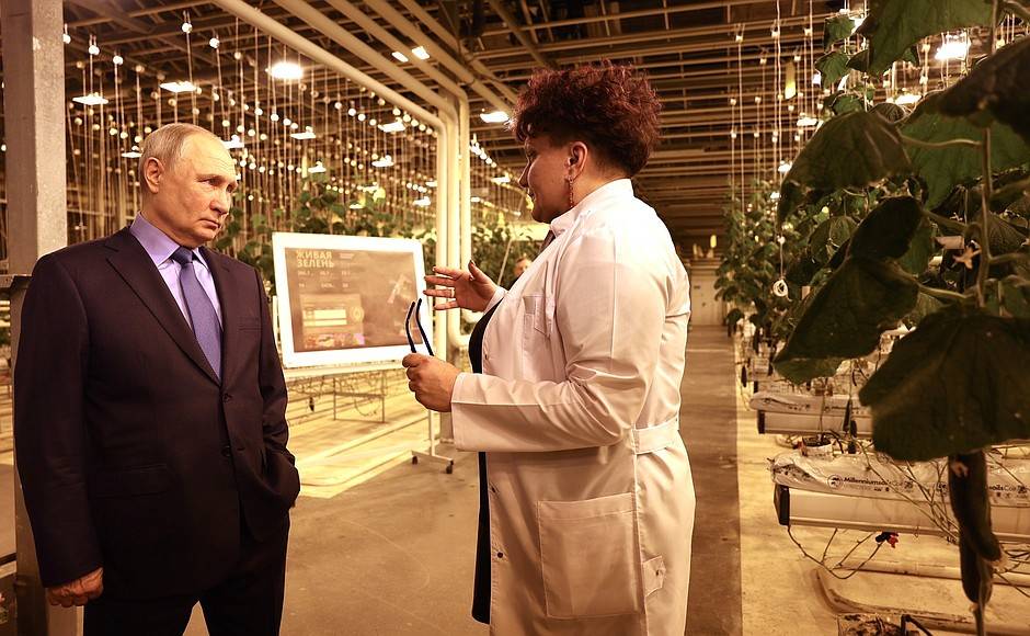 Экскурсию по тепличному комплексу семьи Макатровых провела для Президента России индивидуальный предприниматель Наталья Макатрова.