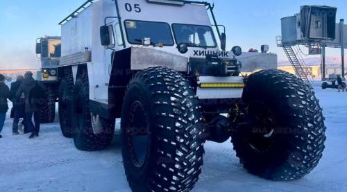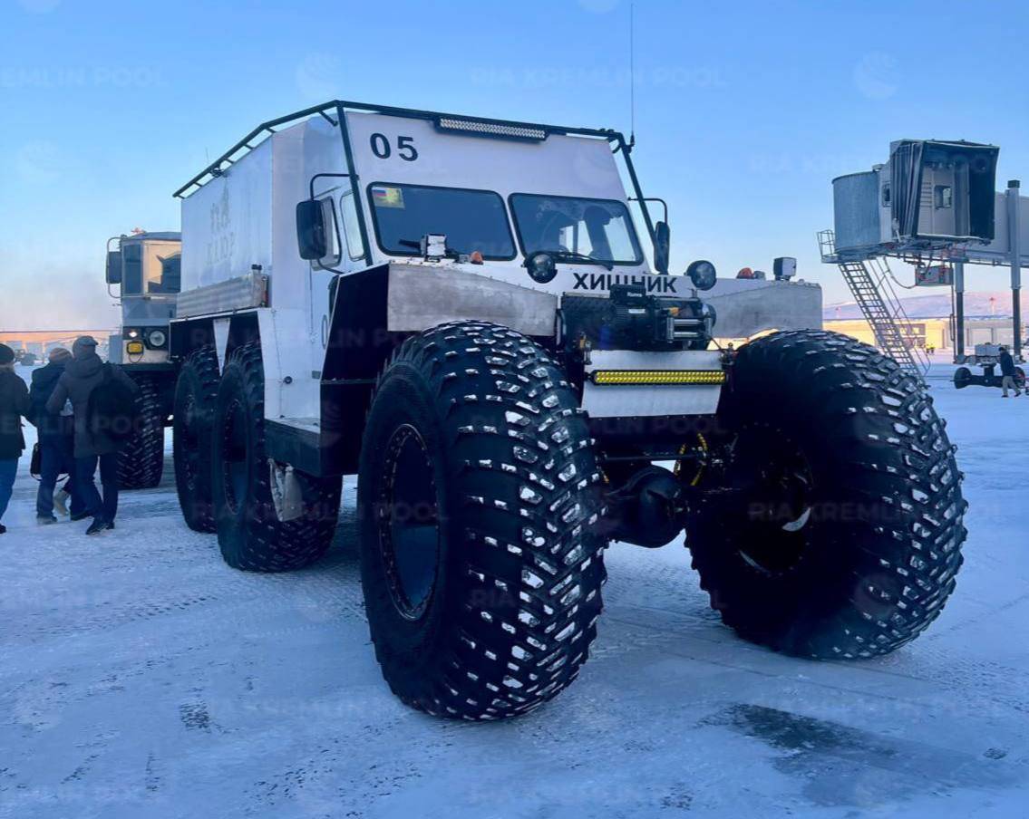 В ходе поездки на Чукотку Владимир Путин, отмечают СМИ, передвигается на снегоболотоходе. Это вездеход на огромных колесах сверхнизкого давления — они в разы больше шин для стандартного внедорожника. Благодаря этому создается минимальное давление на грунт, и машина уверенно двигается по снегу.