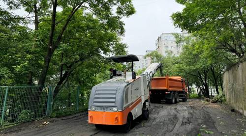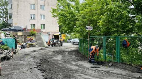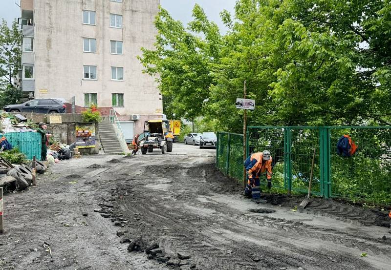 «Ремонт в районе Котельникова, 22 проводится силами муниципального предприятия «Содержание городских территорий». Накануне здесь приступили к демонтажу старого покрытия, которое уже пришло в негодность. Впереди – замена слабого грунта на скальный, устройство щебёночного основания и асфальтирование», – сообщили в управлении дорог администрации Владивостока.