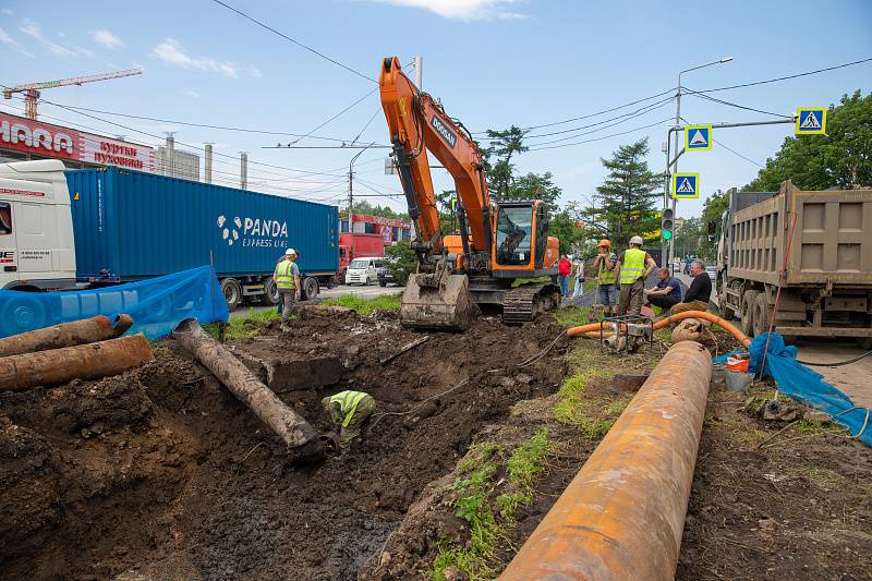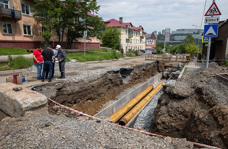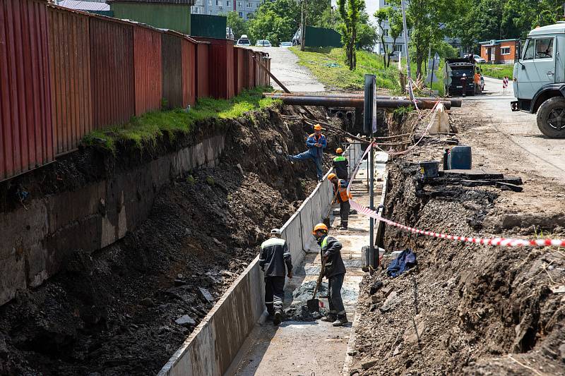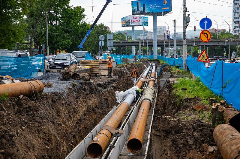 На улице Хабаровской подрядчики по заказу МУПВ «ВПЭС» занимаются капитальным ремонтом и реконструкцией сетей. Здесь нередки были аварийные ситуации – застройка густая, магистрали капитально не менялись давно… В прошлом году заменили 2,7 километра. В этом по плану замена еще 7,5. В сумме уже более десяти! Новая теплосеть улучшит водоснабжение в домах по улицам Хабаровской, Амурской, Океанскому проспекту, проспекту Острякова, Садовой, Союзной, Партизанской, Комсомольской…
