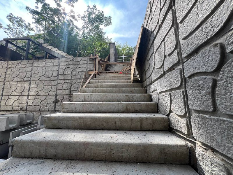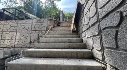 Самая важная часть проекта благоустройства уже закончена. Подпорная стена высотой в 5,8 м, толщиной в 0,6 м и общей длиной в 70 м возведена. Корреспонденту "Вести:Приморье" удалось увидеть фактически финальный этап на работ на объекте. "Финалим", - так говорят простые строители. Ответственные лица скрупулезно осматривают возведенную подпорную стену.