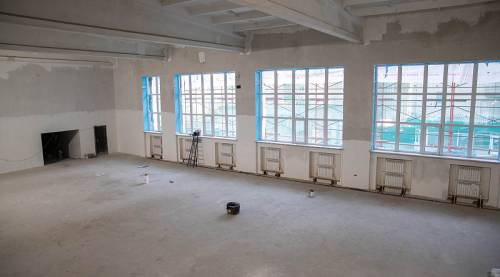 28 октября ход ремонтных работ проверил глава города Константин Шестаков. В большом спортзале и других помещениях уже установили пластиковые подоконники и радиаторы, смонтировали утеплитель и ветро-влагозащитную мембрану, лотки для прокладки электрических сетей. Сейчас специалисты подключают здание к электричеству, занимаются разводкой системы теплоснабжения, ремонтируют водопровод и канализацию, а также выполняют шпаклевку стен.