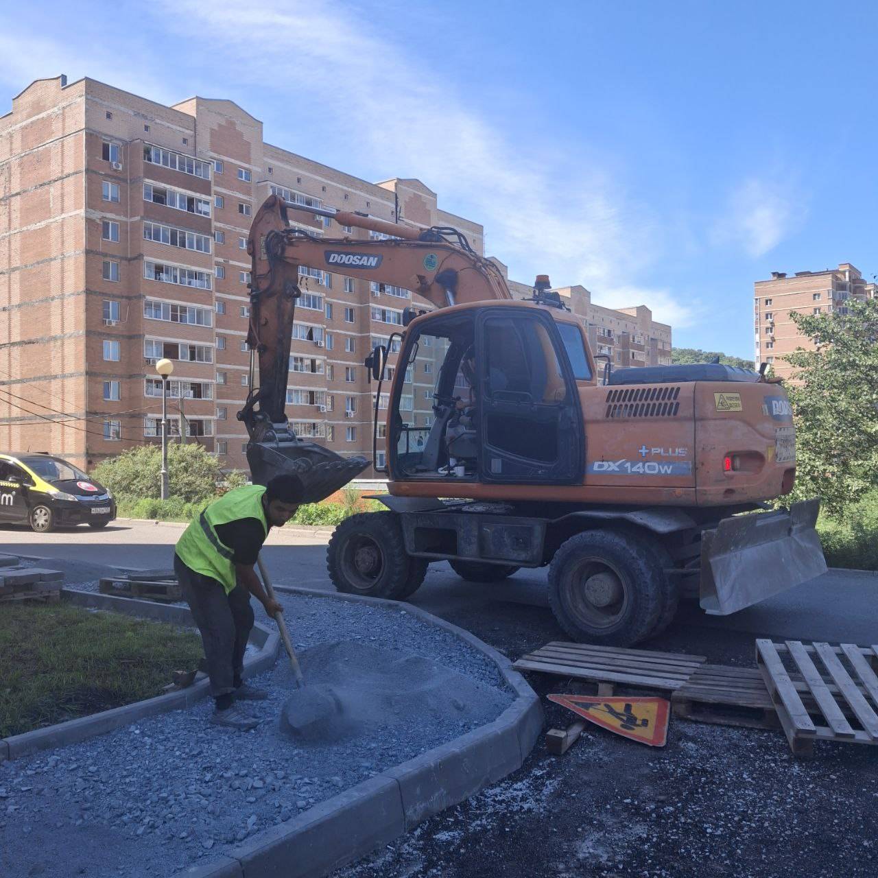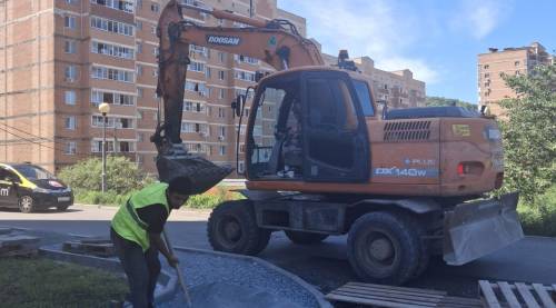 На выезде с исполняющим обязанности заместителя главы администрации Владивостока Григорием Пейхвассером корреспондент «Вести:Приморья» познакомился с ходом работ собственными глазами.В полном смысле слова, работа была в самом разгаре и не останавливалась ни на минуту - рабочие приступали к асфальтированию большого двора на улице Анны Щетининой, 9.