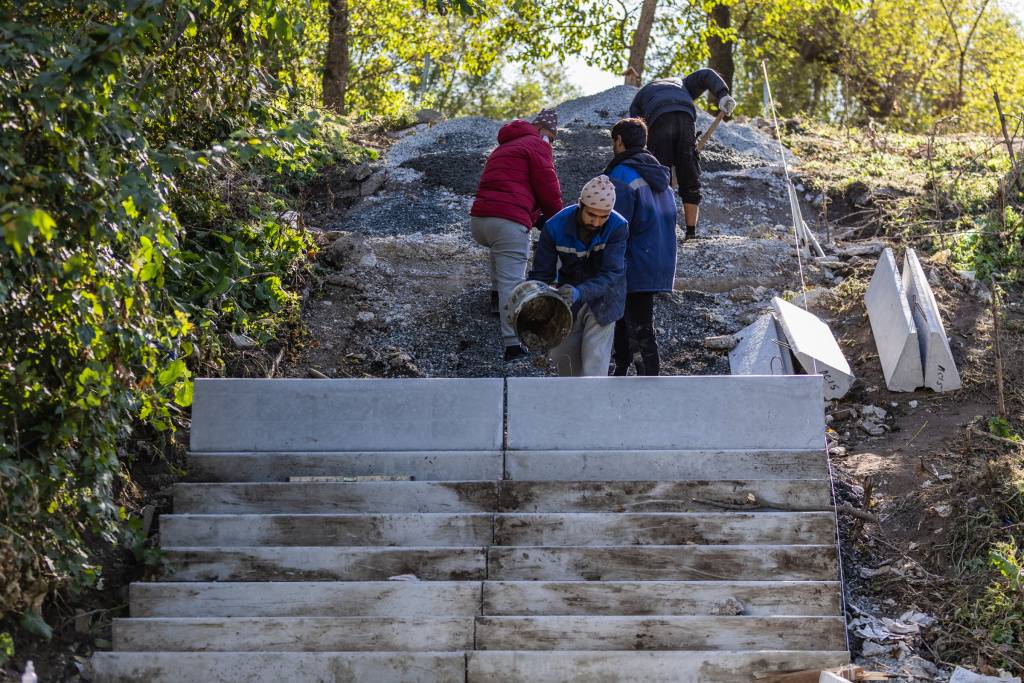 Отметим, в этом году во Владивостоке работы по комплексному ремонту лестниц уже выполнены на Океанском проспекте, 70, Невельского, 29, Нейбута, 26, Станюковича, 14, Нейбута, 30, Жигура, 40 и 18, Адмирала Юмашева, 10-8, Снеговой, 127, Державина, 16-21, Толстого, 47 и 25, Баляева, 36-40, Аллилуева, 5, Тунгусской, 24, Пионерской, 1, Пушкинской, 13а, Мыс Чумака, 1а, 1-й Морской, 8, Ладыгина, 11-13, Каплунова, 15-11, Краева, 7, Надибаидзе, 1-11, Интернациональная, 57-59, Зои Космодемьянской, 15, Адмирала Кузнецова, 56а, Славянской, 17, Светланской, 85-87 и в районе железнодорожной станции Мальцевская. Также новые лестницы возвели на Русском острове возле памятников Г. Г. Елисееву и Героям-Тихоокеанцам и на улице Вилкова в сторону Киевской, 8.