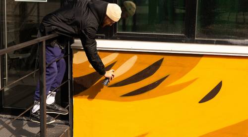 «Это совсем не про вандализм пустыми надписями. Граффити — искусство очень разностороннее, и благодаря этим картинам можно действительно говорить с молодежью, развивать их намеренность и понимание культуры. Развивать тематику родного города и края. В своих работах мы постарались сделать так, подобрать такие эскизы и цвета, чтобы они откликались у людей, чтобы у каждого возникали ассоциации о том, в каком прекрасном месте мы все живем», –рассказал художник объединения Максим Некко.