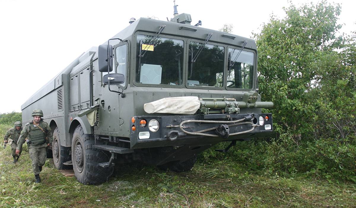 Поодаль разместилась машина управления, на которой размещён командный пункт с комплексом «Монолит». Радиолокационная станция комплекса сканирует море, анализирует надводную обстановку — простыми словами, ищет цель и находит её.