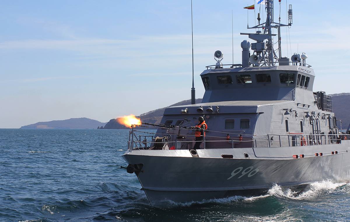 Пока морская авиация во время учения прочёсывает определённые участки акватории, на выполнение задач в море выходят противодиверсионные катера командования Войск и Сил на Северо-востоке, предназначенные для борьбы с диверсионно-террористическими силами и средствами в акваториях пунктов базирования и на ближних подходах к ним. Прибрежную зону боевые пловцы патрулируют на новых противодиверсионных катерах проекта 21980 «Грачонок». Как правило, военнослужащие работают рядом с базой, но при необходимости могут быть переброшены самолётами и вертолётами в нужный район.