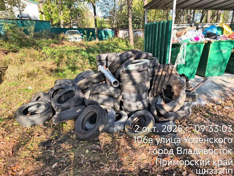 Во Владивостоке регулярно проводится работа по ликвидации свалок старых автомобильных шин. Чаще всего их обнаруживают на пляжах, склонах, обочинах дорог и зелёных территориях. С начала года сотрудники муниципальных организаций «Зелёный Владивосток» и «Содержание городских территорий» убрали с улиц города около 800 тонн подобного мусора.