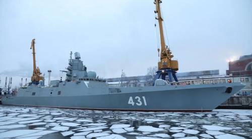По традиции о борт корабля была разбита бутылка шампанского. С этим успешно справилась крёстная мать нового фрегата — начальник отдела по связям с общественностью и внутренним коммуникациям завода «Северная верфь» Екатерина Козырева. После спуска на воду корабль ждут достройка, испытания и приём в состав Военно-Морского Флота.