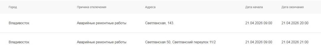 Во вторник, 21 апреля, несколько адресов в центре Владивостока останутся без холодного водоснабжения, сообщает сайт Примвода.