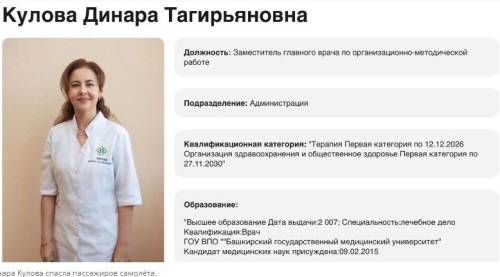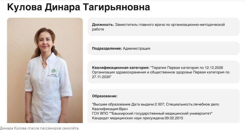 «На рейсе Уфа – Новосибирск – Владивосток произошел экстренный случай, когда троим пассажирам стало плохо. Бортпроводники объявили о поиске медика, на что отозвалась Динара Кулова, заместитель главного врача по организационно-методической работе, которая летела на Дальневосточный конгресс», — говорится в сообщении.