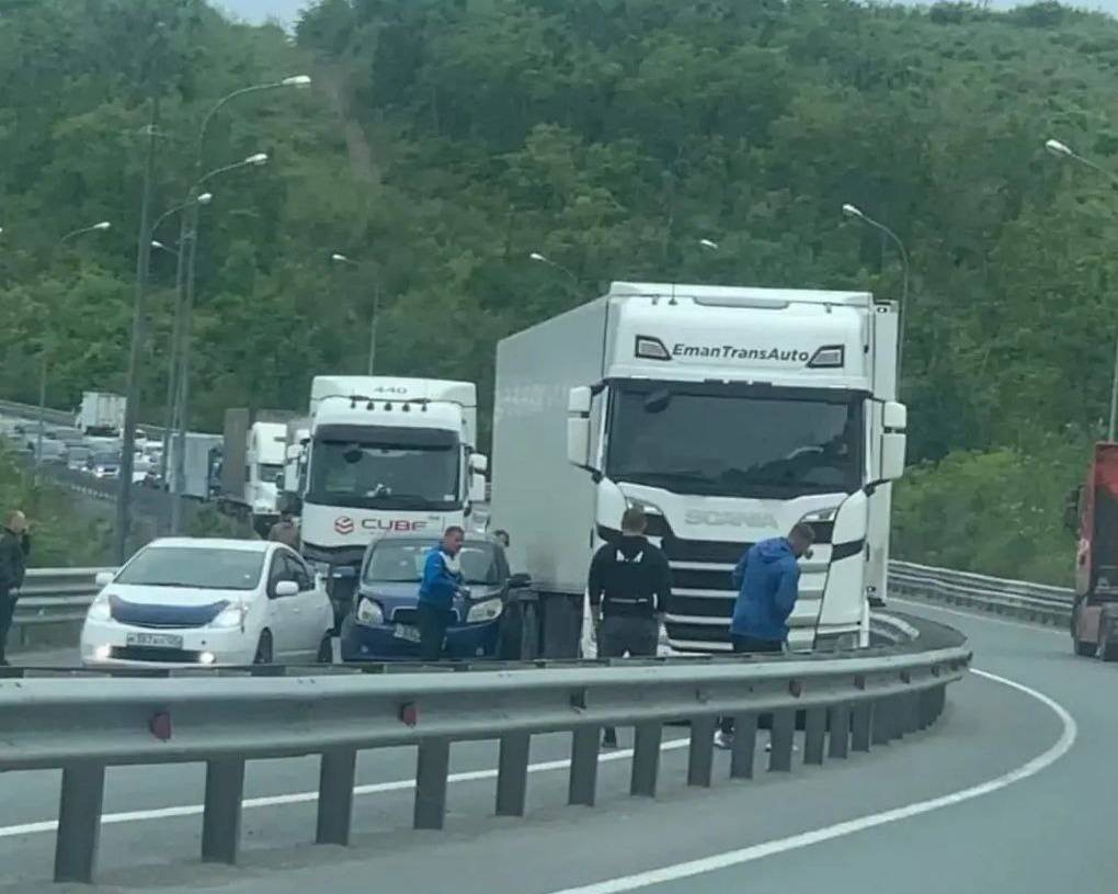 ДТП случилось на объездной трассе Седанка-Патрокл. Десятки машин встали в огромную пробку. Очевидцы говорят, что столкнулись три машины. Одна из трех - большегруз. Именно он влетел в леерное ограждение.