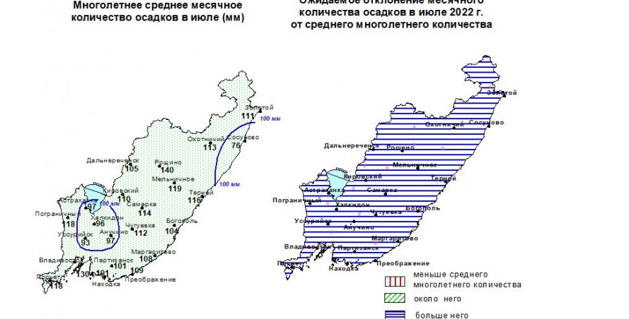 Прогноз аномалий температуры воздуха и осадков по Приморскому краю на июль 2022 г.опубликован на сайте Примгидромета, сообщают "Вести:Приморье". Согласно предварительным прогнозам синоптиков, в Приморском крае будет жаркая и влажная погода.