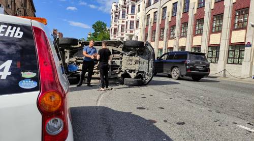 Днём в воскресенье, 26 июня, на перекрёстке Океанского проспекта с улицей Прапорщика Комарова произошло ДТП. Грузовик подтолкнул Toyota Land Cruiser и тот опрокинулся на бок, сообщают "Вести:Приморье" со ссылкой на vl.ru.