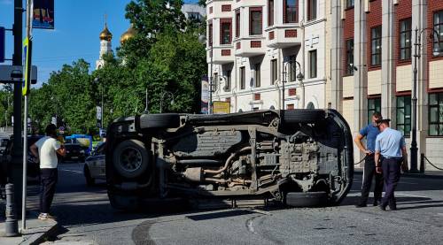 Ехавший в соседнем ряду водитель Toyota Land Cruiser попытался уйти от удара, но не успел. Китайский грузовик JAC въехал в свежий чёрный джип. От удара он опрокинулся на бок и едва не вылетел на тротуар, остановившись посреди левой полосы.