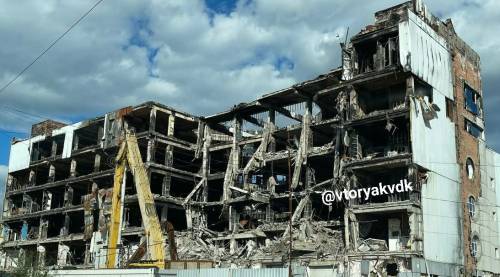 Вокруг здания установили забор, работает спецтехника. Уже разобрана задняя часть стены здания. Очевидцы продолжают делиться фото происходящего. Многие в комментариях пабликов говорят, ушла эпоха. Но находятся и те, кто отмечает, «мертвый ТЦ» лишь наводит страх на горожан.