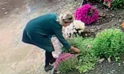 На камеру видеонаблюдения попала ещё одна похитительница цветов с многострадальных клумб на улице Кирова, 38 в Артёме. Эта с виду приличная дама наведывается сюда практически ежедневно. По-хозяйски обходит цветочные клумбы, при этом часть цветов просто портит, часть выкапывает и уносит с собой. На этом видео зафиксирована её вчерашняя вылазка, -
