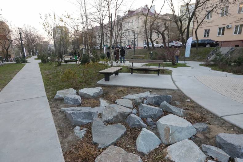 Новый благоустроенный сквер появился во Владивостоке на улице Окатовой