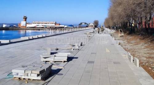 Сейчас на набережной ведутся ремонтные работы. Рабочие укладывают новое покрытие - плитку. К середине декабря работы планируют закончить.