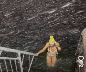 "Плохая идея сидеть дома в такую крутую погоду. Я приехала в "Косатка. ДВ" за ощущениями", - Анастасия выложила в Сеть видео, на котором она идет в одном купальнике по набережной, а затем погружается в море.