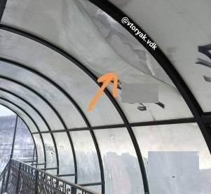 Как оказалось, поликарбонат не выдержал тяжести снега. Часть конструкции, установленной в районе проспекта 100-лет Владивостока, 155, нарушена. Жителей просят быть внимательнее при движении на данном участке. Ведь последствия могут оказаться тяжелыми. Крыша может рухнуть на головы пешеходам.