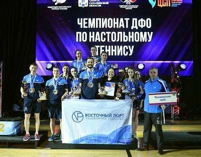 Спортсмены «Восточного Порта» снова среди лучших по настольному теннису в ДФОПредставители сборной «Восточного Порта» были одними из лучших на чемпионате Дальневосточного федерального округа по настольному теннису. Соревнования, накануне завершившиеся в Южно-Сахалинске, собрали около полутора сотен сильнейших теннисистов из Приморского, Хабаровского и Забайкальского краёв, Амурской, Магаданской и Сахалинской областей, республик Бурятия и Саха (Якутия), сообщают «Вести:Приморье» со ссылкой на пресс-службу компании.
