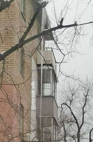 Размер сосульки, которая образовалась на одном из жилых домов, напугал жителей Владивостока, сообщают «Вести:Приморье».