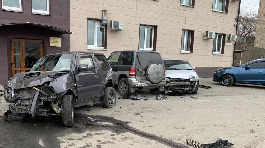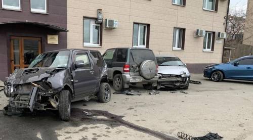 Массовое ДТП в районе улицы Коммунаров, 39. "Автогарант" отмечает, Toyota Crown и Suzuki Jimny двигались со стороны ул. Катерной в направлении ул. Окатовой. Со слов владельца Toyota Crown, за рулем его авто сидел «трезвый водитель» и перед ними перестроился Suzuki Jimny, от чего Crown совершил с ним столкновение. От удара Jimny отбросило на парковку гостиницы Улис и сам столкнулся с припаркованными Honda Insight, Pajero Io и Mitsubishi Delica. Рулевой Delica уехал без претензий. 4-х человек с Jimny госпитализировали медики.