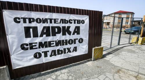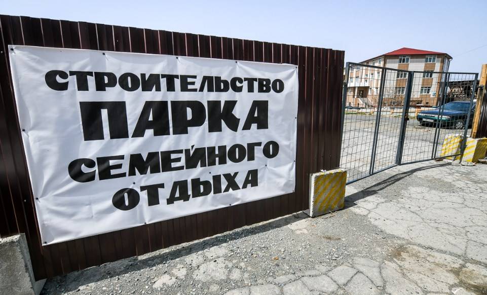Видно, что на огороженной забором территории начинали заливать фундамент, сделали выводы под коммуникации, но на этом и всё. Лежат кучи песка и щебня, стоит автомобиль со спущенными колёсами. Никакие работы не ведутся, территорию не охраняют. Жители Сипягина предположили, что вместо парка семейного отдыха здесь построят кафе. Им остаётся только догадываться, что будет вместо смотровой площадки, потому что паспорта объекта с указанием вида работ и контактов заказчика нет.