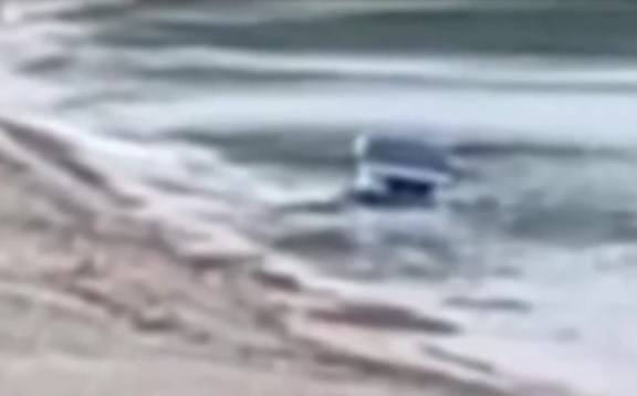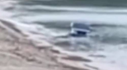 Все произошло на пляже во Врангеле. Что послужило толчком к принятию такого решения, непонятно. Но факт остается фактом - машина оказалась в море.