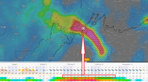 По предварительные данным этого ресурса, сильная гроза с дождем обрушится на курортное побережье Приморья в пятницу. Общее количество осадков может составить не менее 80 мм за 24 часа и меньше. Жителям и гостям Приморья лучше не планировать в это время отдых у моря.