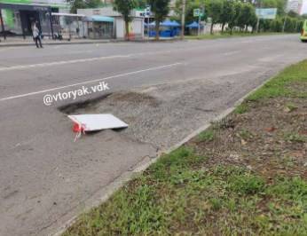 Местные жители в комментариях пояснили, что яма была еще до ливня.