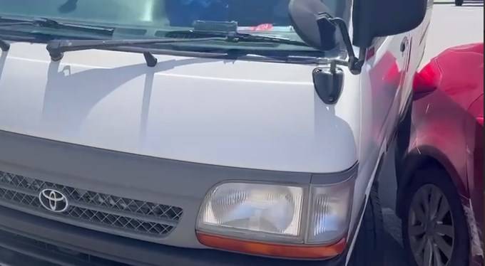 Видео снято потерпевшей стороной. На кадрах видно, мужчина за рулем Toyota Hiace, сдавая назад, задел рядом стоящий припаркованный авто. Решив, что его это не волнует, он покинул место ДТП.