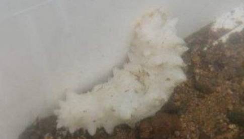 В Приморье добывают дальневосточного трепанга. И такая абсолютно белая раскраска - большая редкость.
