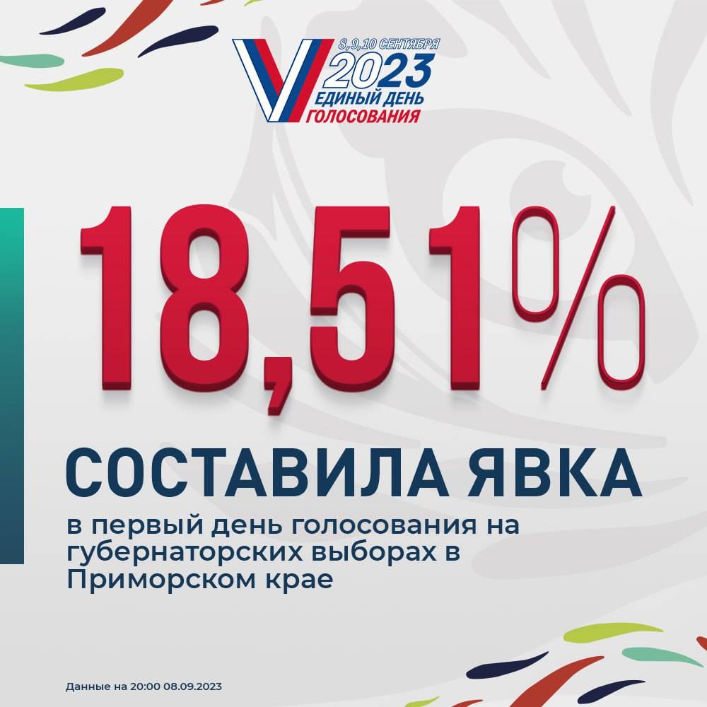 Явка избирателей по итогам первого дня выборов губернатора Приморского края составила 18%, сообщают "Вести:Приморье"