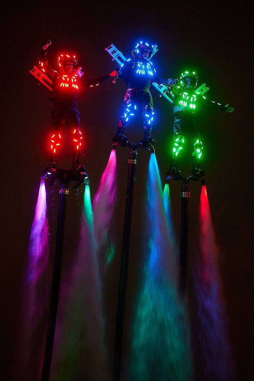 При помощи специального оборудования участники выполнят сложные синхронные акробатические трюки над водной гладью, используя реактивную тягу мощных водяных струй.