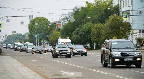 По маршруту проезда делегации с 6 утра было перекрыто движение, но общественный транспорт пропускали по нему до самого проезда колонны.