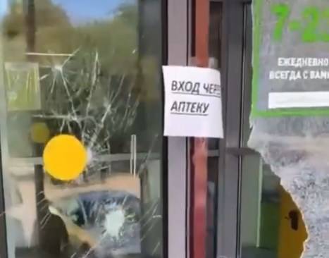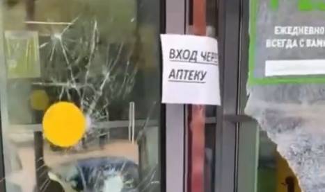 Вандалы разбили входные двери и витрину. На время ремонта горожанам предложено воспользоваться входом через аптеку.