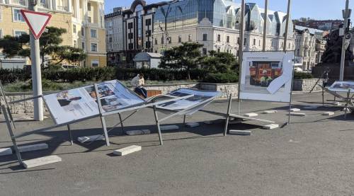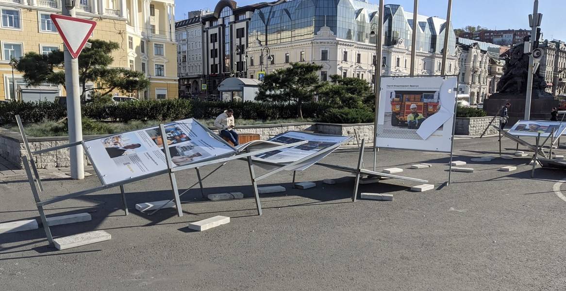 Разбитые стенды фотовыставки проект «Человек труда» увидели горожане на центральной площади Владивостока сегодня, 16 октября, утром, сообщают «Вести:Приморье».