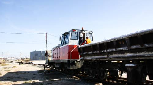 Кульминацией экскурсионного дня стал выезд на тепловозе по узкоколейной железной дороге на садочный бассейн – озеро Селитренное. Где собирается манинговой техникой и грузится на платформы мирабилит из которого производится сульфат натрия. А доставляют его на производство те самые тепловозы, которые Иван нарисовал для компьютерной игры. Локомотивов такой модификации нет больше нигде в стране. На Алтай их поставляет Камбарский машиностроительный завод. 400 лошадиных сил способны за один раз доставить на переработку 70 тонн мирабилита. После поездки в кабине Иван сделал фотографии техники, чтобы по приезде домой лучше прорисовать некоторые детали.