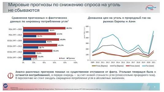 Потребление угольной продукции на мировых рынках стабильно растет. Евросоюз убивает свою дешевую энергогенерацию, а АТР, наоборот, наращивает. Сегодня Россия входит в топ-3 списка мировых лидеров-экспортеров угля, уступая только Австралии и Индонезии. Доля нашей страны в мировом экспорте угля 16%, и эту долю необходимо наращивать. Всемирно известные аналитические агентства публикуют данные, которые даже при экспресс-анализе показывают, что их прогнозы в результате значительно отстают от факта и нередко в два раза.